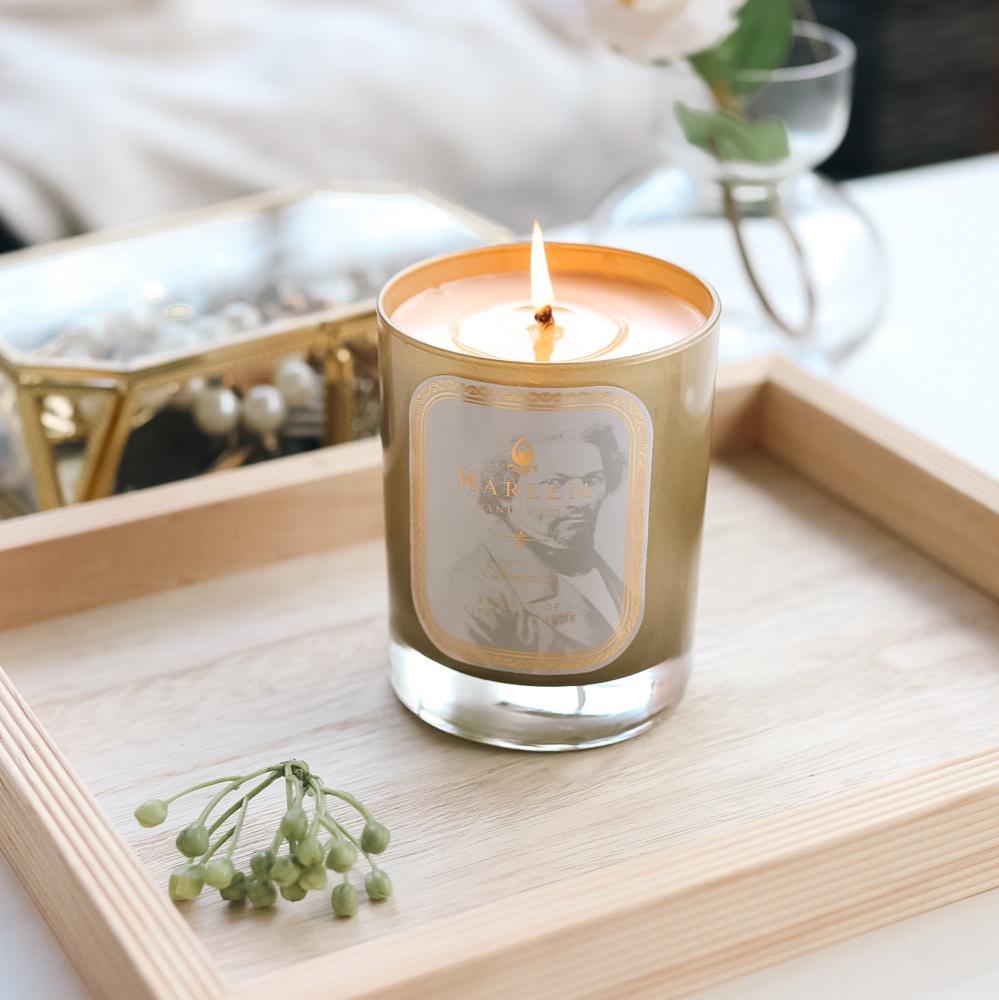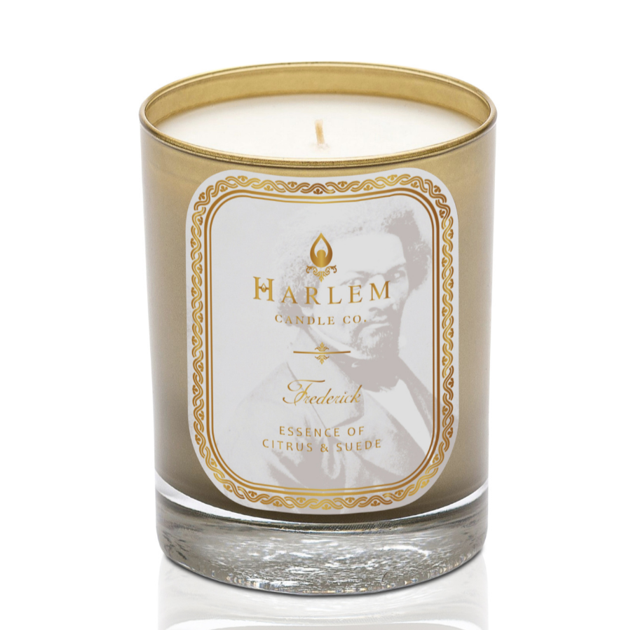 1 Frederick Candle - Inspired by Frederick Douglass, our "Frederick" candle pays loving tribute to a brave and charismatic man who passionately followed his dream of a world of freedom for all. Infused with fruits and botanicals, we’ve re-imagined the orangery from Douglass’s childhood to include juicy bergamot, yuzu, and fresh green cardamom which sets the stage for a heart of vanilla orchid, cypress, and ginger blossom. A liberating base of suede, sandalwood, and tonka bean add warmth and depth to this elegant and uplifting blend.