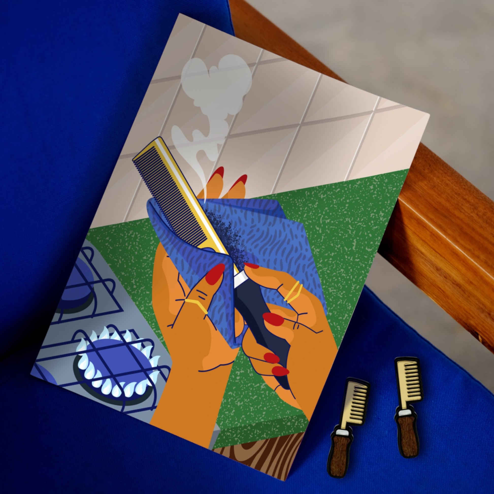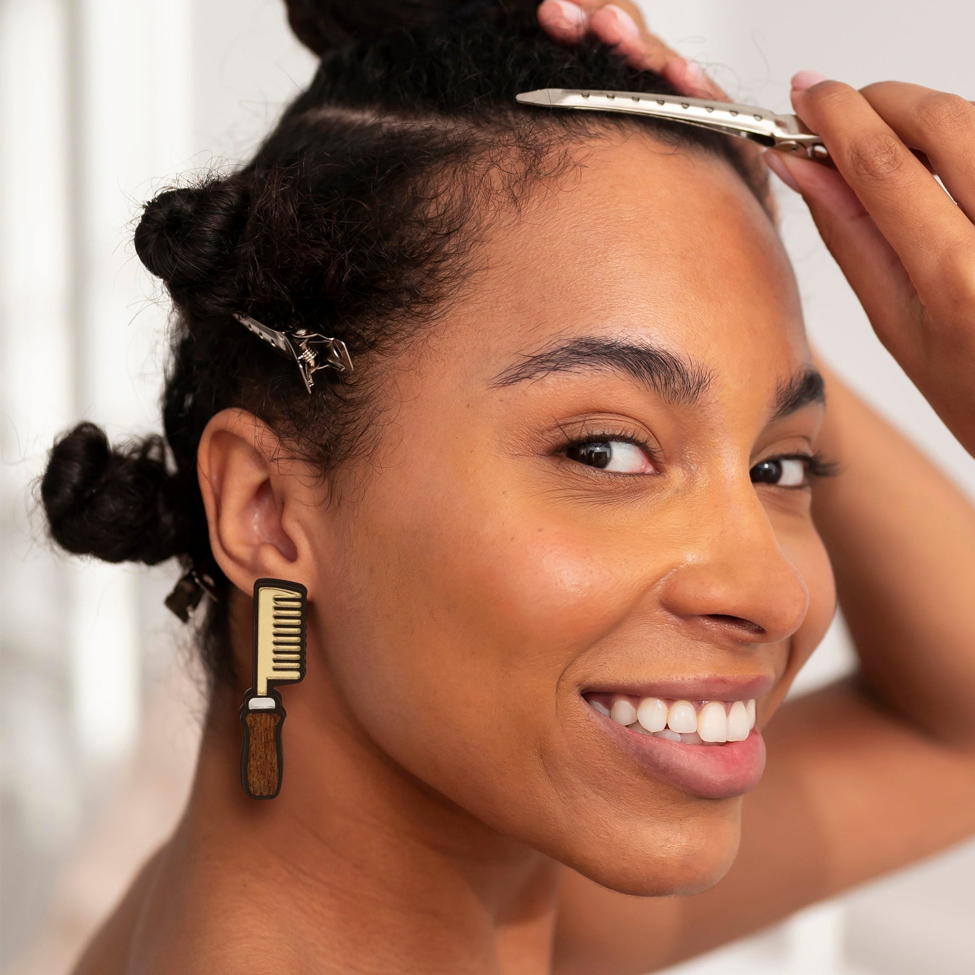 These gold-mirrored stud earrings with acrylic-shaped hot combs attached are ready to transport you back to those nostalgic days of hair-straightening by the kitchen stove—without the risk of burning your ear.