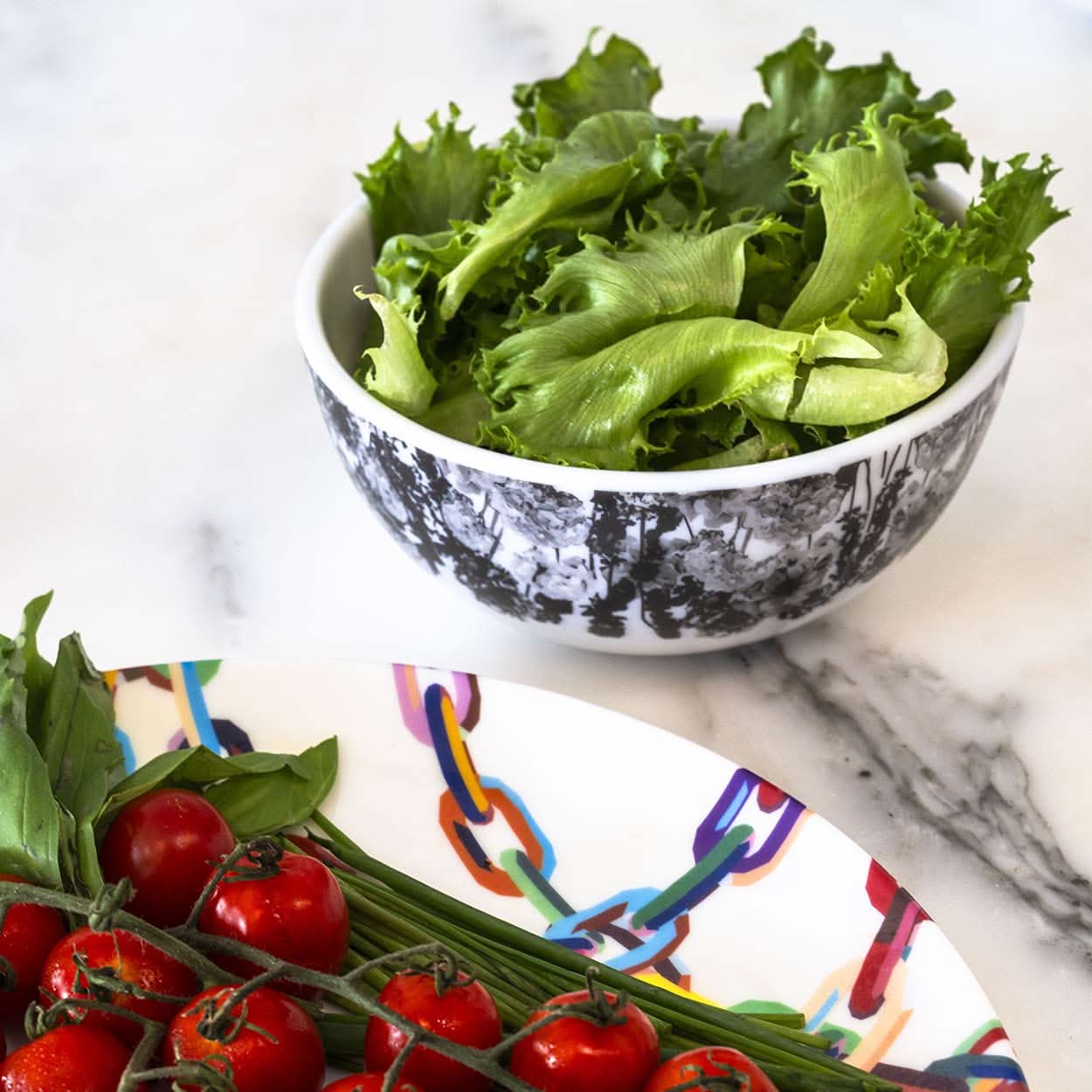 Add refined style to your table with the Grayscale Floral Garden bowl.