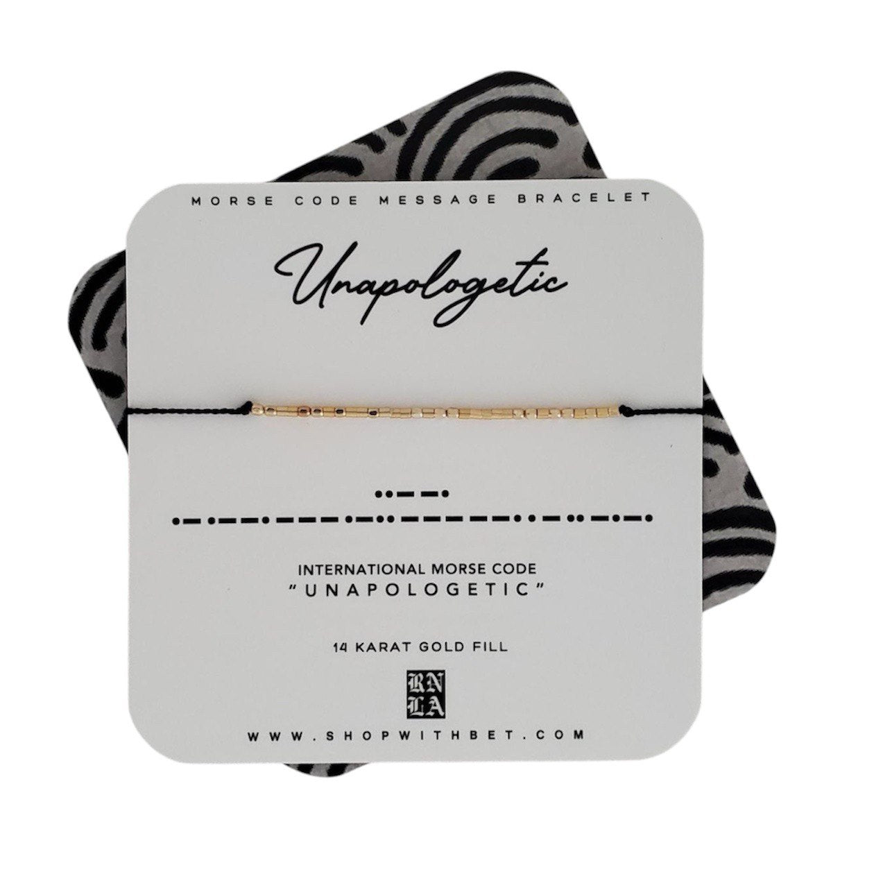 🖤 "Unapologetic" is spelled out in Morse code using high-quality Sterling Silver, 14-karat Gold, or 14-karat Gold Fill beads.