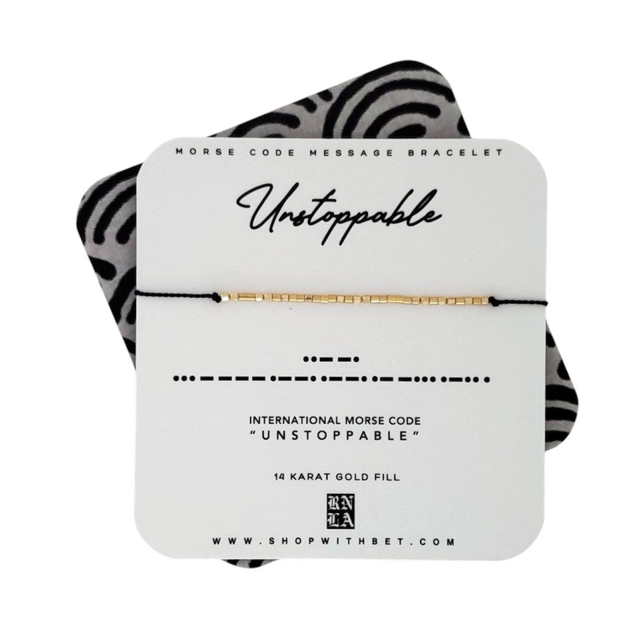🖤 "Unstoppable" is spelled out in Morse code using high-quality Sterling Silver, 14-karat Gold, or 14-karat Gold Fill beads.